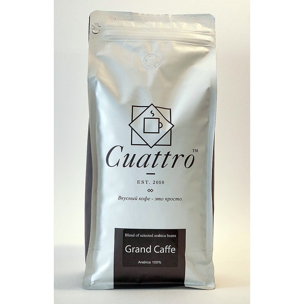 Благородная сбалансированная смесь CUATTRO Grand Caffe, заключающая в себе сочетание терпкой горчинки и шоколадных оттенков, дополненных едва уловимыми винными и цветочными нотками. Шелковая кремовая пенка, деликатный и тонкий аромат, плотный обволакивающий вкус и мягкое винное послевкусие. Кофе, который поддержит Вас в моменты напряженной работы и подарит ощущение гармонии, если Вы устали.